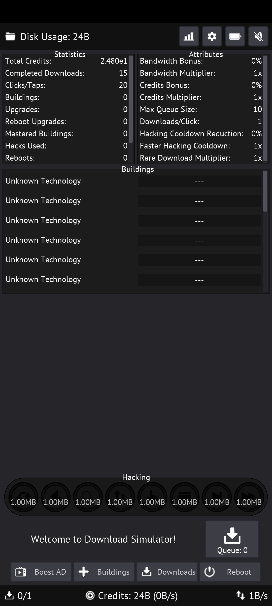 This game is very awesome. Hopeful for further upgrades and for a separate page for the game, a github page, where the author(s) can continue to upgrade and make this even better. Turning economy mode on allowed me to progress further than I thought possible...